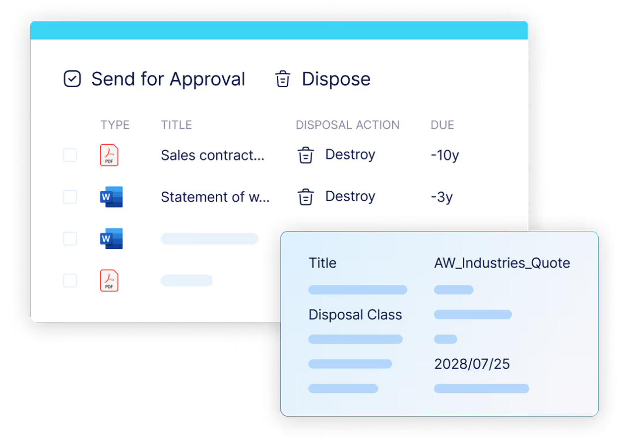 Apply automated classification, retention policies, legal holds, and defensible disposal to files stored in shared drives – ensuring information is managed according to organizational policies.